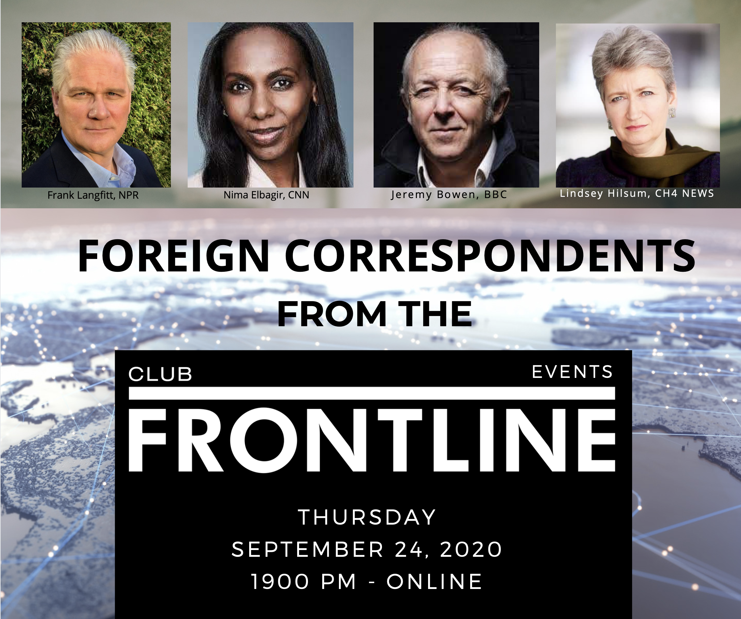 We kick off the season with our Foreign Correspondents from the Frontline. They discuss world conflict hotspots and the effects of the pandemic on their profession. Moderated by Frank Langfitt. Join Jeremy Bowen, Lindsey Hilsum, Nina Elbagir.
