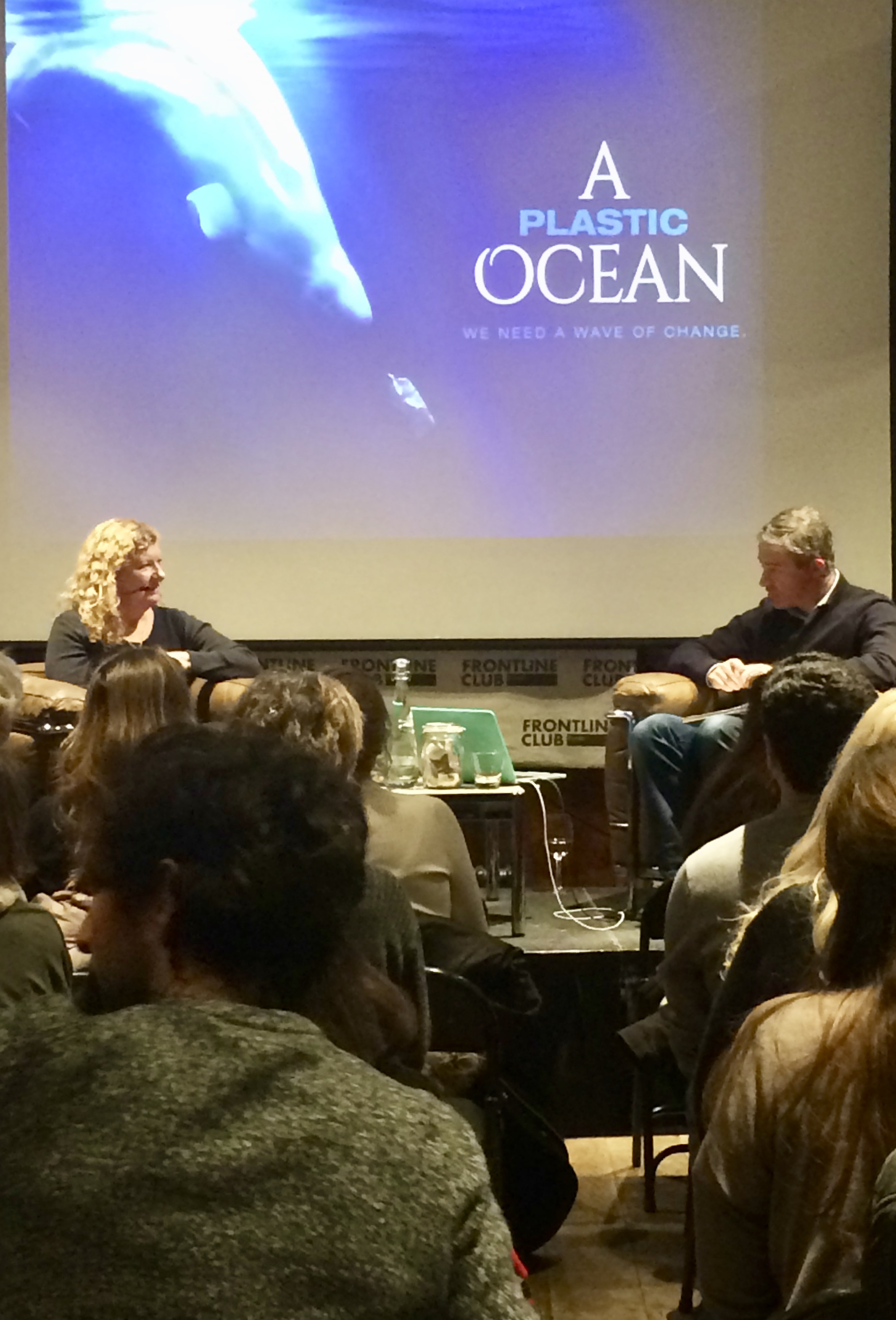 Stunning yet shocking images of pollution caused by plastics in our oceans formed the basis of an engaging discussion at the Frontline Club on Thursday 1st March. The evening was hosted by investigative journalist Oliver Steeds who was in conversation with film maker and executive producer Jo Ruxton.