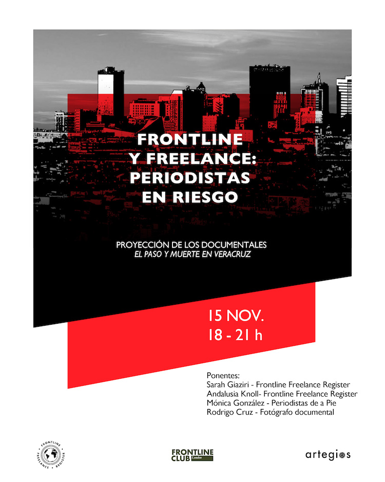 The event will feature two documentaries about journalism in Mexico and will be followed by a discussion with local and international journalists about the situation for freelance journalists in Mexico and the work of Frontline Freelance Register. El Paso, is a documentary that tells the story of Mexican journalists who fled in exile to Texas after receiving threats in Mexico, related to their work. Death in Veracruz is a mini documentary produced by AJ+ that shows the daily life of Mexican Photo journalist Félix Márquez and Jorge Sánchez, the son of assassinated journalist Moisés Sánchez in Medellín, Veracruz.